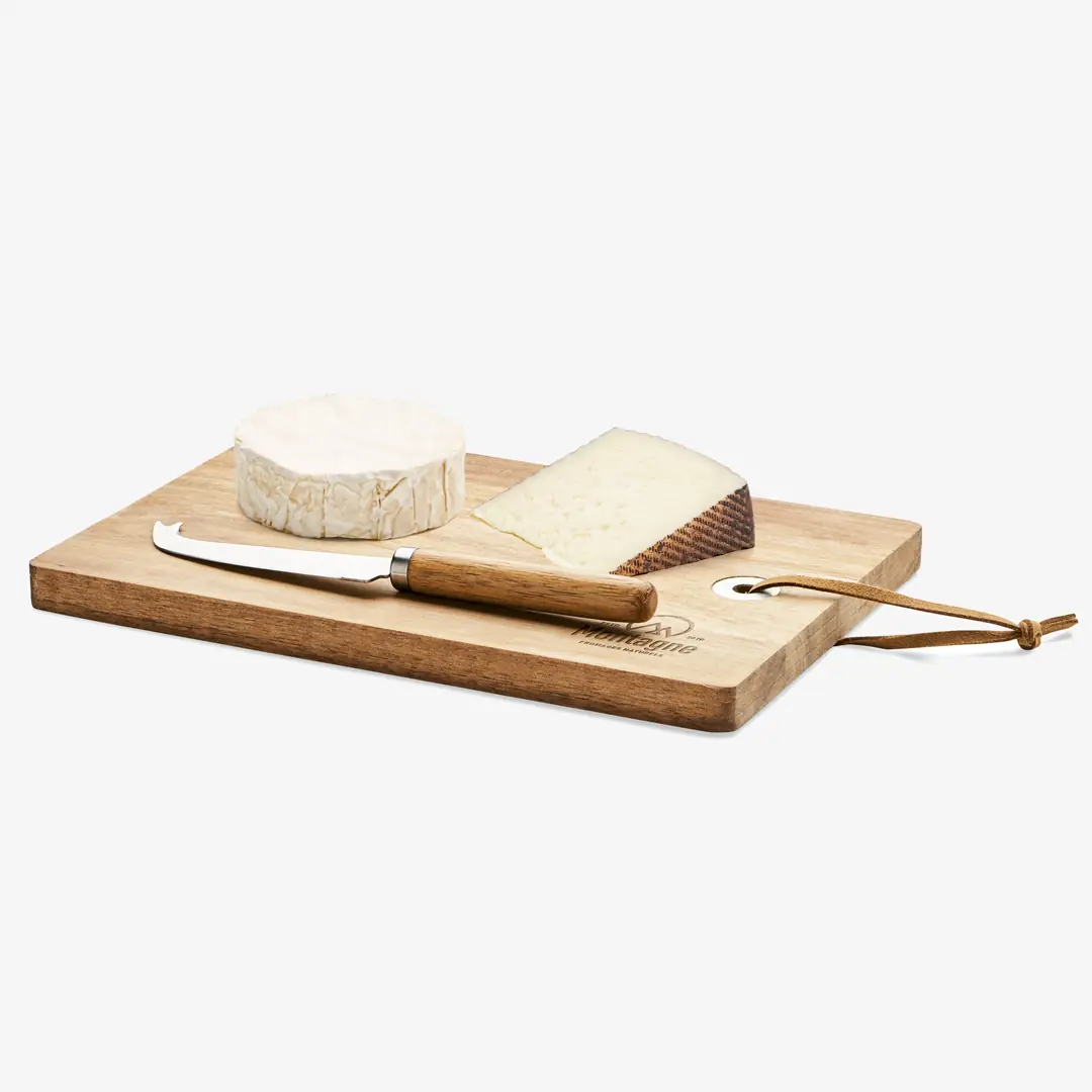 La planche à fromage personnalisée en bois d'acacia avec couteau est un cadeau idéal pour les restaurants, caves et coffrets gourmets d'entreprise. Personnalisez cette planche à fromage avec le logo de votre entreprise et intégrez-la à vos packs gastronomiques promotionnels.