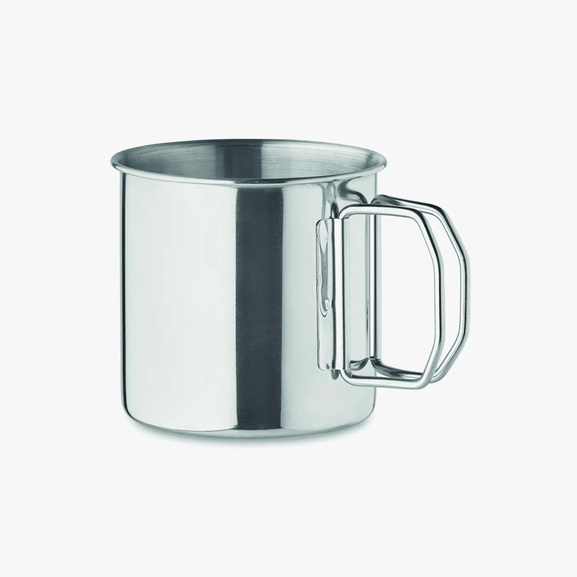 Cette tasse en acier inoxydable à simple paroi est dotée d’une anse pliante, ce qui facilite son rangement dans un sac à dos ou un kit cadeau. Son format léger et résistant la rend idéale pour des actions de merchandising dédiées au camping, à la montagne ou aux activités de team building.