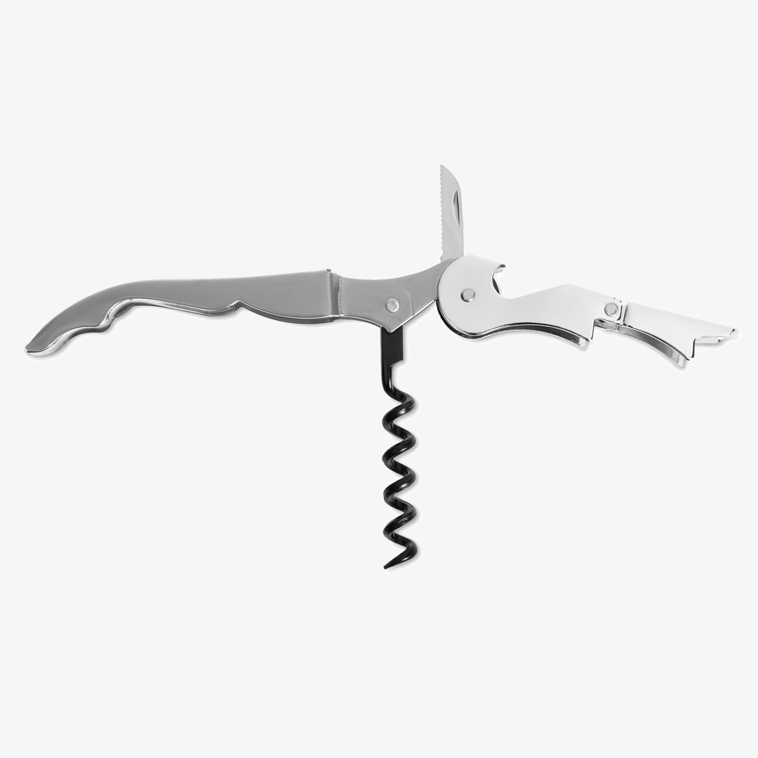 Fabriqué en acier inoxydable, le tire-bouchon de sommelier personnalisé en acier inoxydable est équipé d'un double levier qui facilite le débouchage des bouteilles avec moins d'effort. Son format compact se glisse facilement dans une poche, un tablier ou un étui à vin, ce qui en fait un accessoire idéal pour vos actions de merchandising dans le canal horeca.